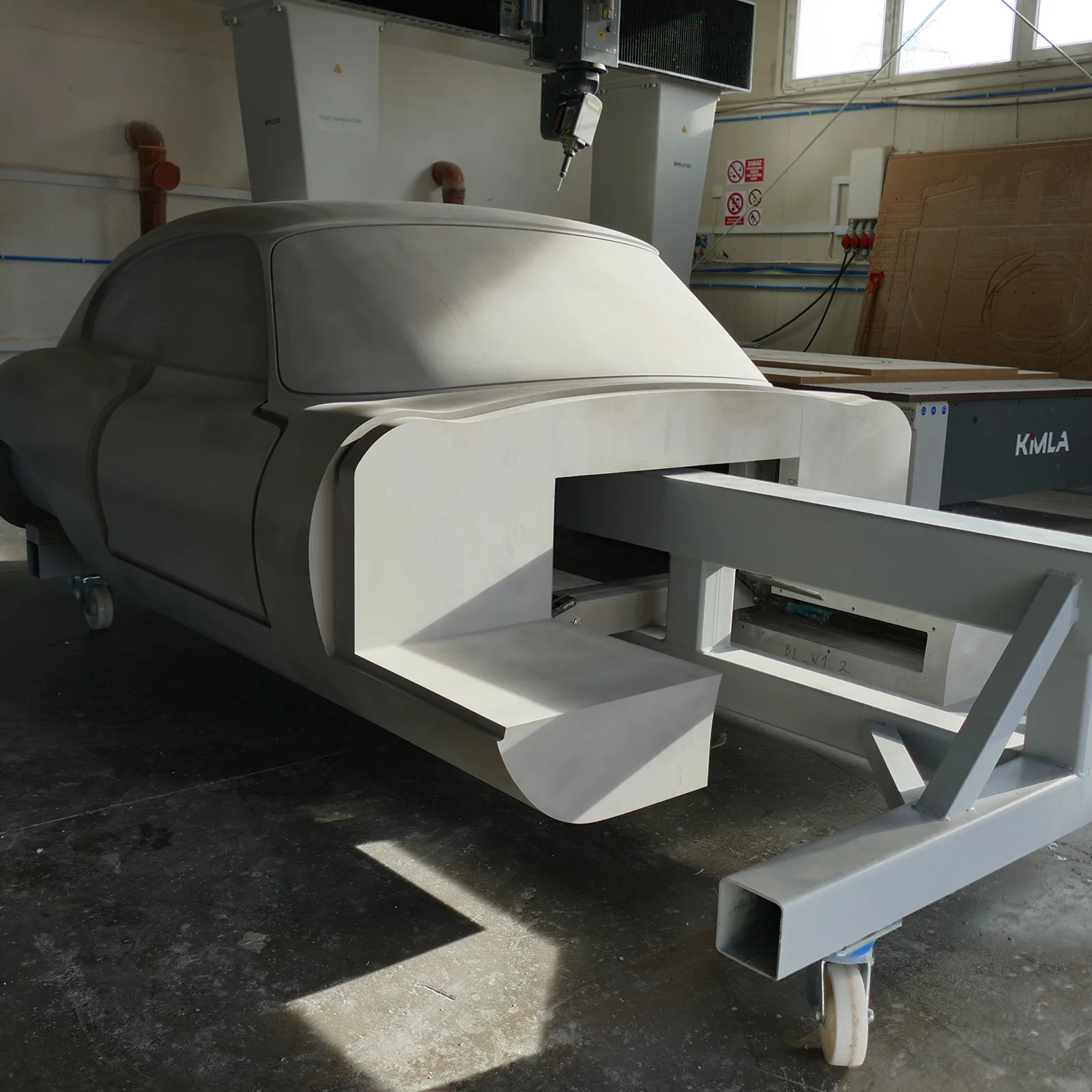 MDF bucks and forming models used to validate draft, radii and trim logic before committing to production tooling.